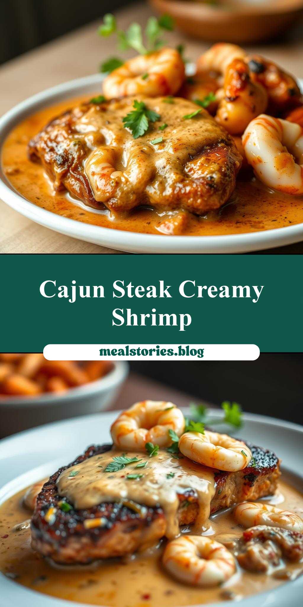 A Cajun-inspired dish featuring a tender steak, succulent shrimp, and a rich creamy sauce, all coming together in a harmonious balance of flavors and textures.