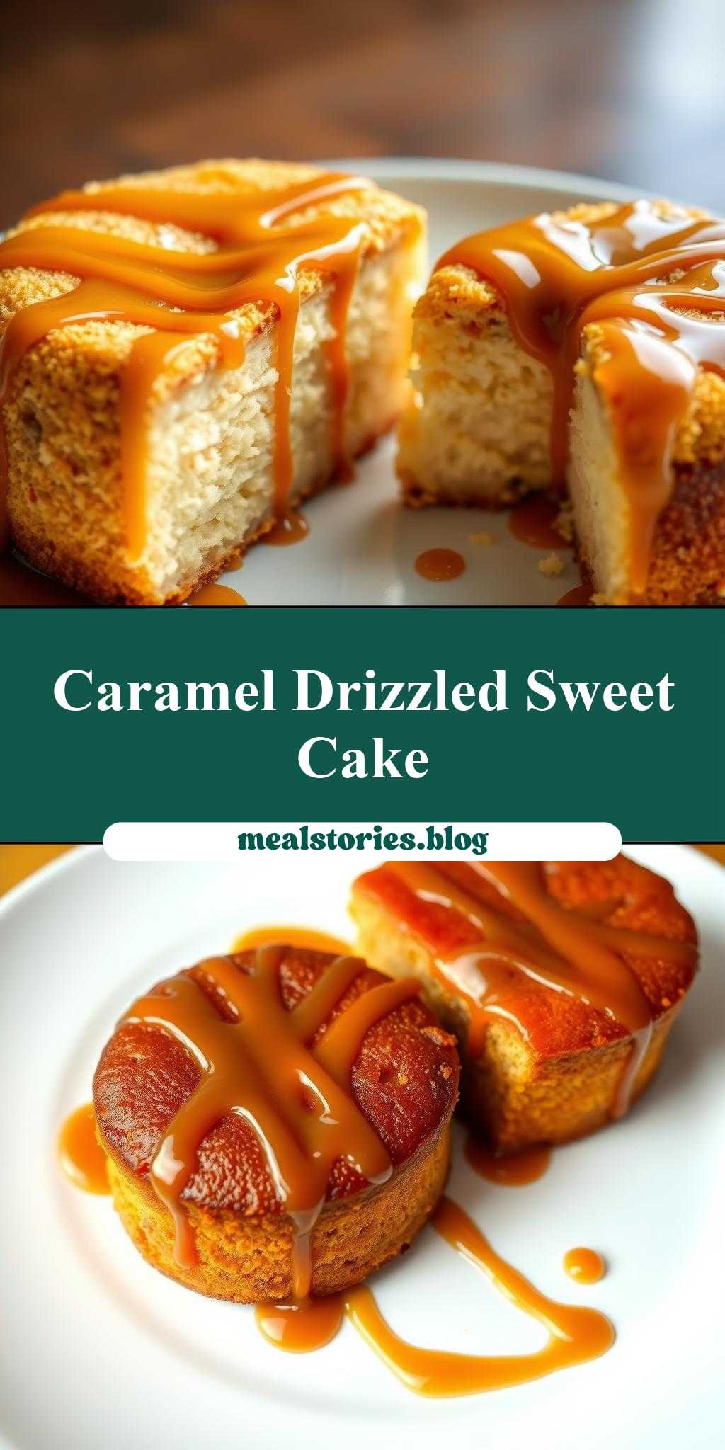 A recipe for two moist cakes topped with a rich caramel drizzle, one of which is invitingly sliced. Perfect for special occasions or everyday indulgence.
