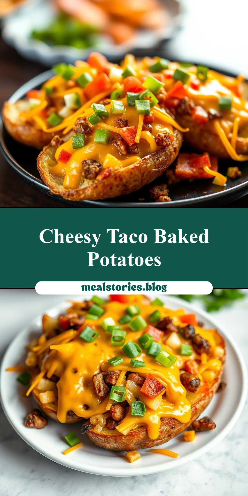 A flavorful and easy-to-make dish combining baked potatoes with taco fillings and cheese.