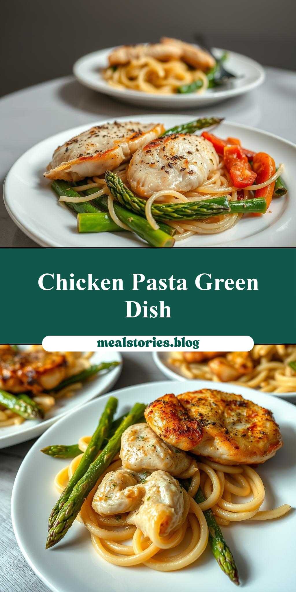 A simple yet elegant dish combining chicken, pasta, and asparagus in a flavorful and textured meal.