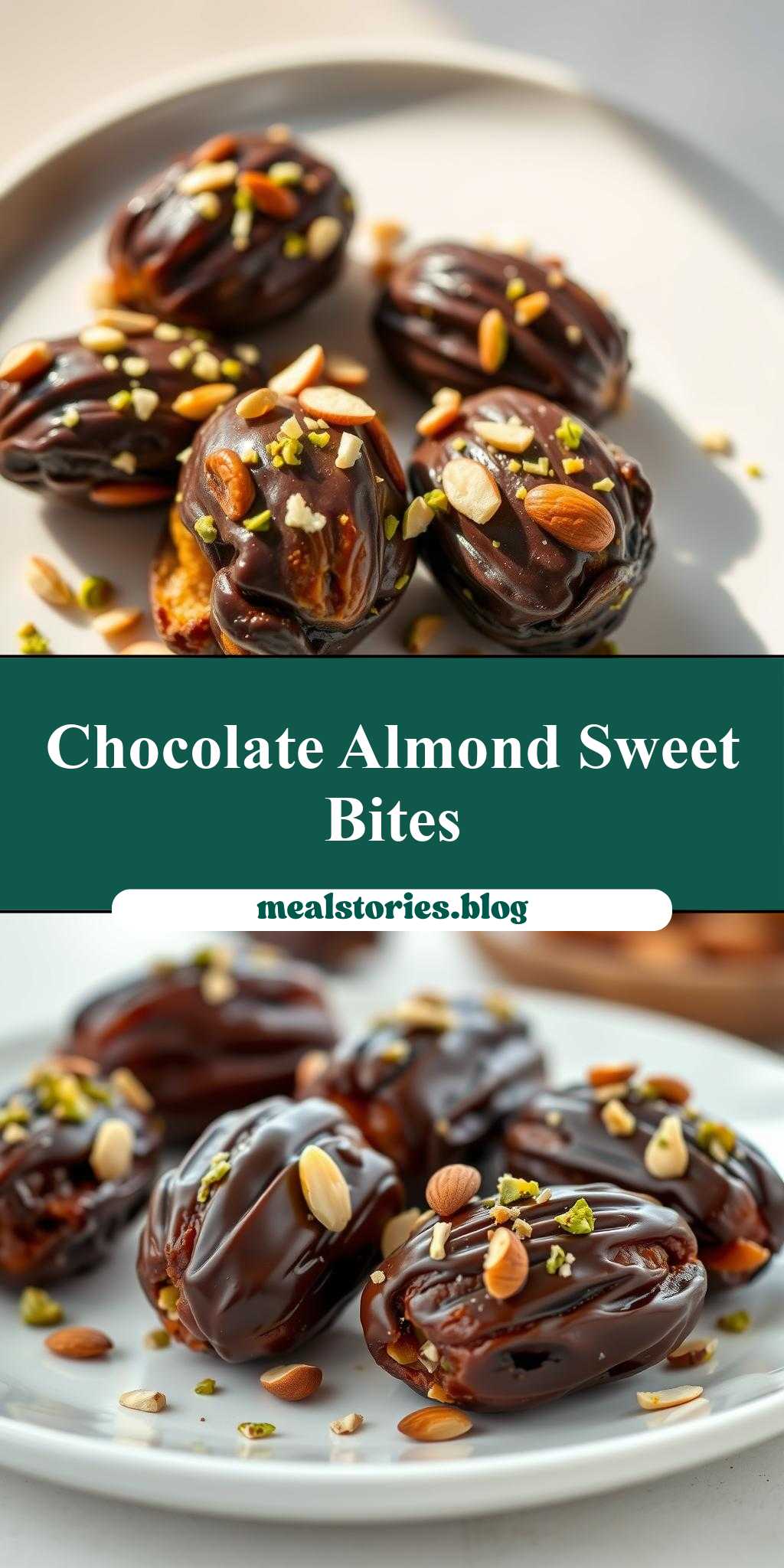 A simple yet elegant dessert featuring chocolate-covered dates with the added crunch of almonds and pistachio sprinkles, perfect for special occasions or casual gatherings.