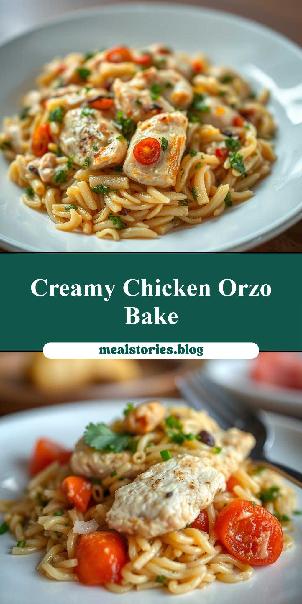 A creamy, flavorful dish combining chicken, orzo, and vegetables in a dreamy sauce.