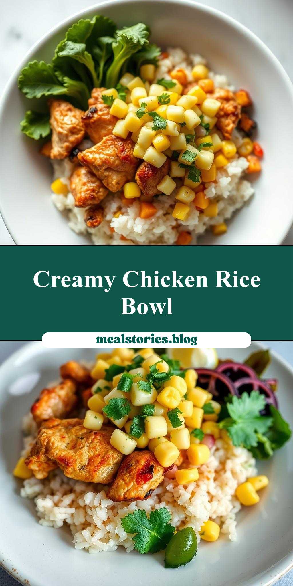 A flavorful and vibrant dish combining chicken, rice, and creamy corn salsa, perfect for weeknight dinners or special occasions.