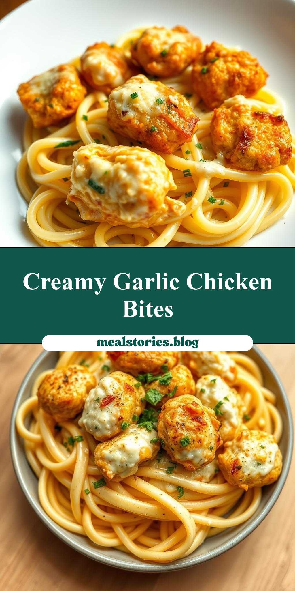 A creamy parmesan pasta dish paired with garlic butter chicken bites, perfect for comfort food lovers and those seeking a gourmet twist on everyday ingredients.