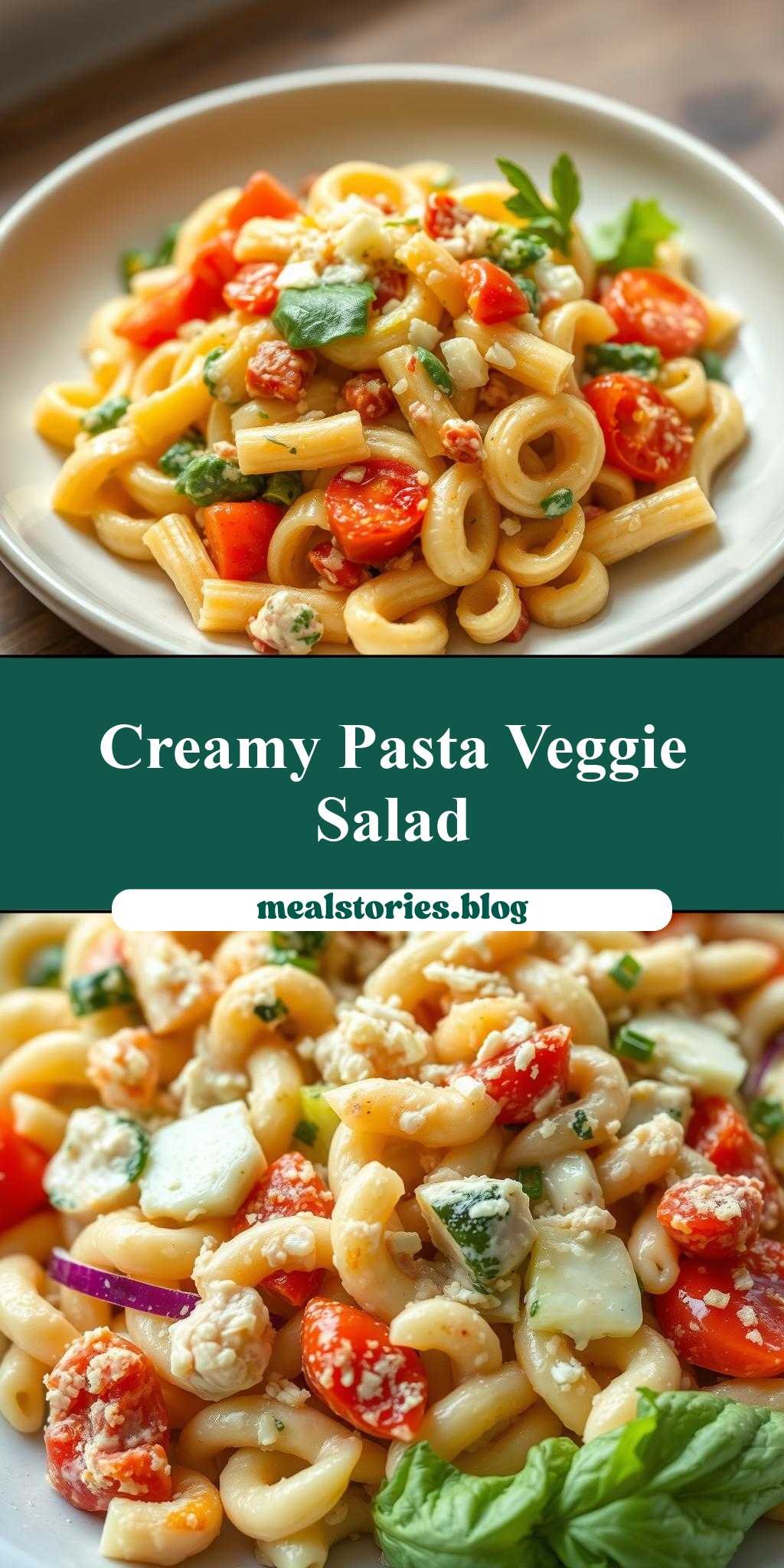 A creamy pasta salad loaded with vegetables and cheese, perfect for any meal or occasion.