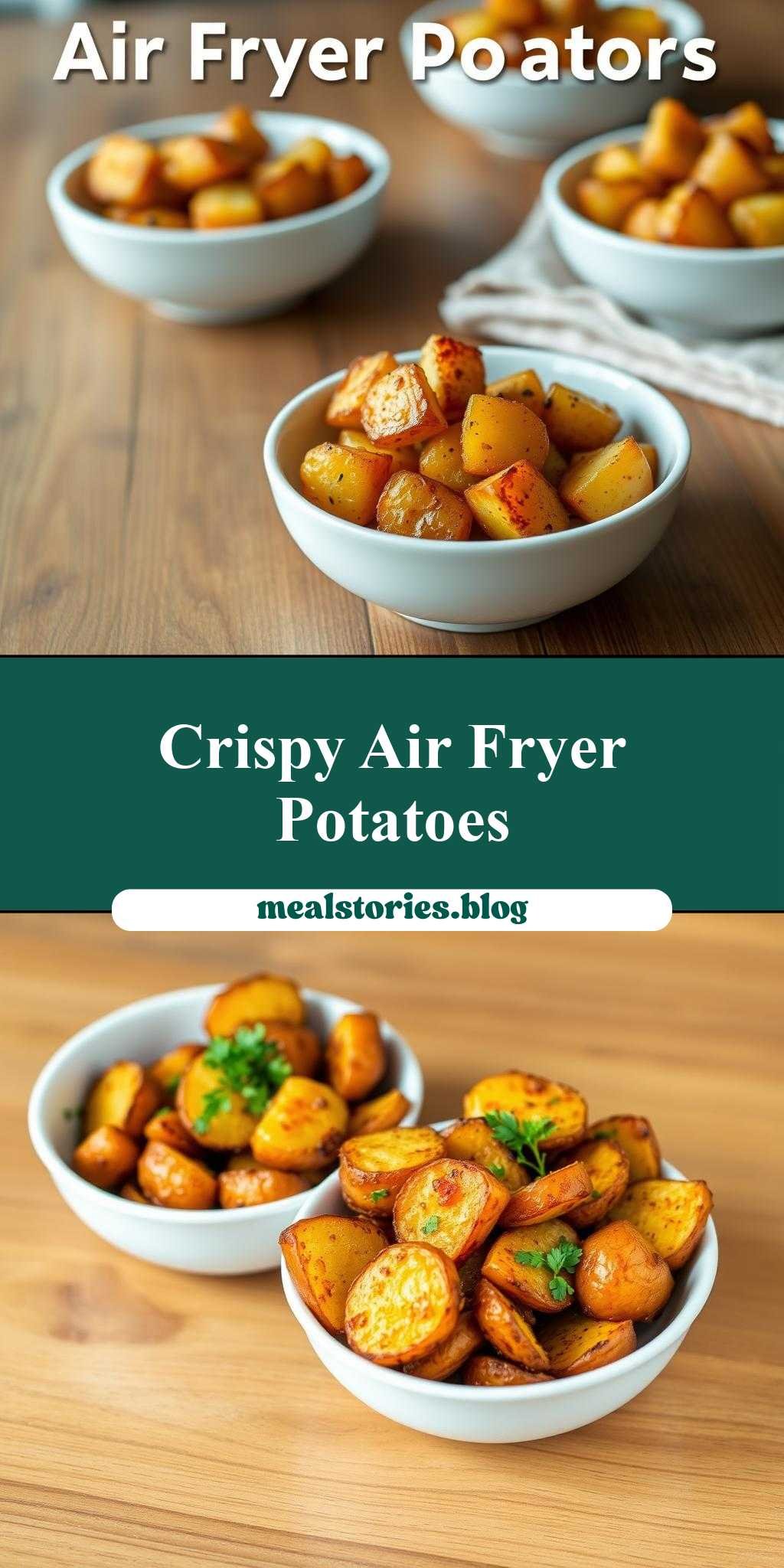crispy air fryer baby potatoes in white bowls on a wooden table with text overlay