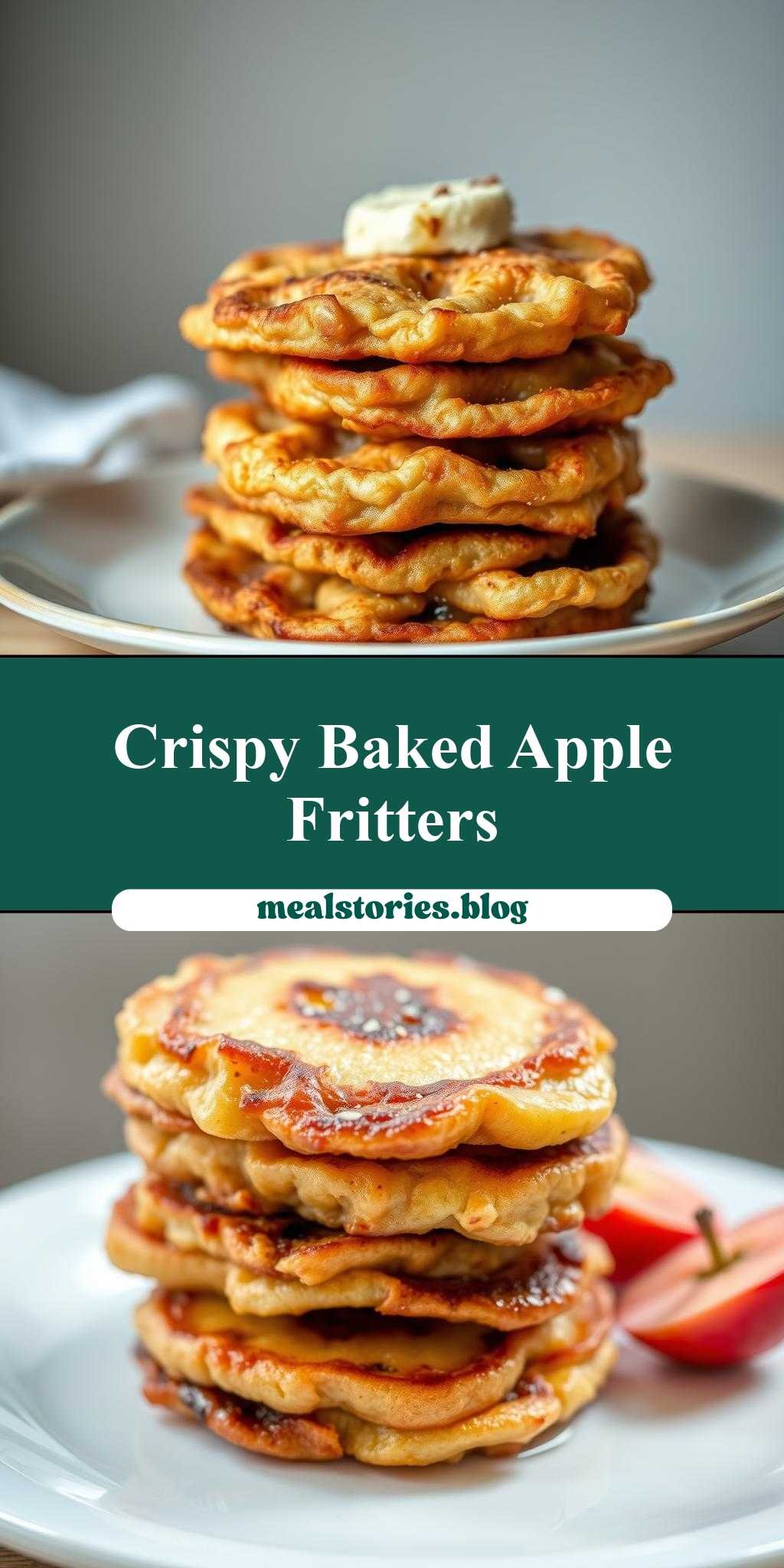 A recipe for tender and flavorful baked apple fritters, stacked elegantly for a visually appealing dessert perfect for any occasion.