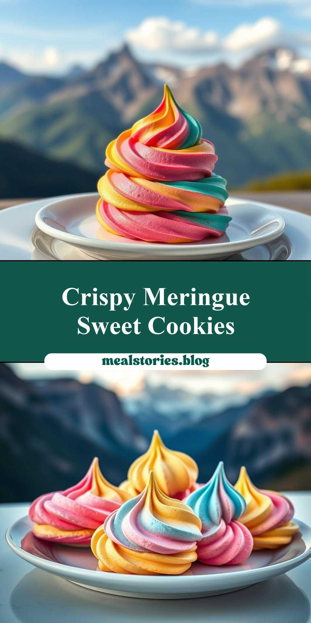 Imagine a plate of vibrant, crunchy meringue cookies set against the breathtaking backdrop of majestic mountains. This dish is not only a feast for the eyes but also a delight for the taste buds. With its perfect balance of sweetness and airiness, these colorful meringue cookies are incredibly easy to make and require just a few everyday ingredients. The best part? You can customize them with your favorite colors and flavors, making each batch a unique masterpiece. Whether you’re a seasoned baker or a beginner in the kitchen, this recipe promises to deliver impressive results with minimal effort, perfect for sharing with friends and family or enjoying all by yourself.