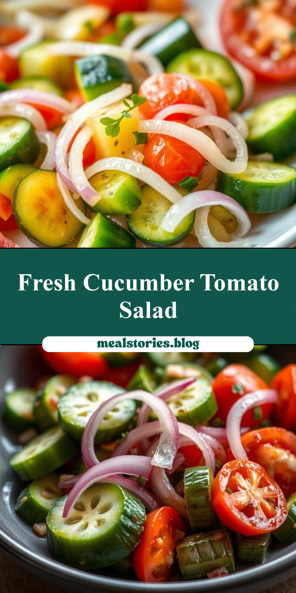 A refreshing side dish combining cucumbers, onions, and tomatoes in a zesty marinade, perfect for summer BBQs or as a healthy snack.