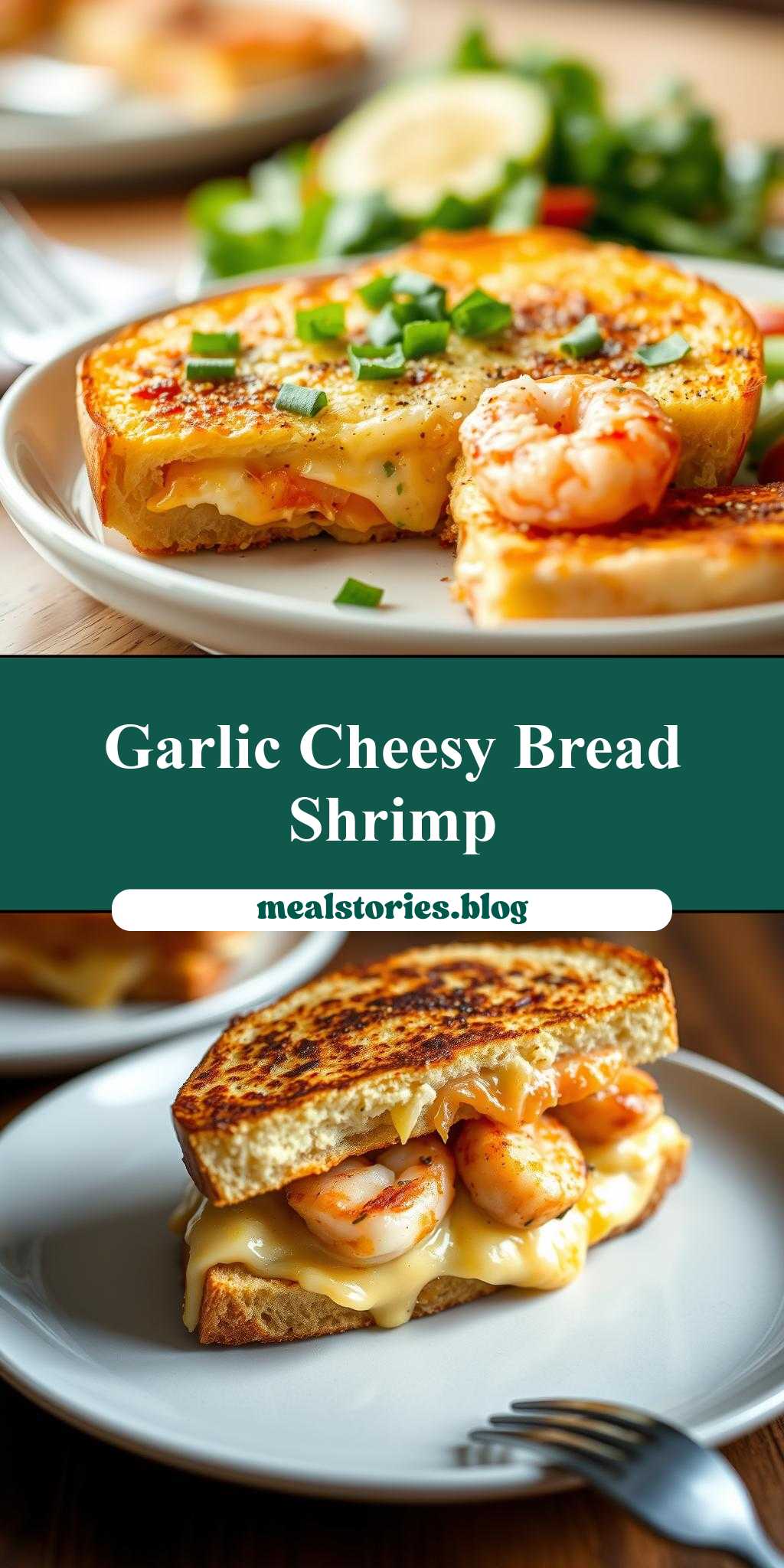 A gourmet grilled cheese filled with succulent shrimp, gooey cheese, and crispy garlic bread, perfect for a quick yet impressive meal.