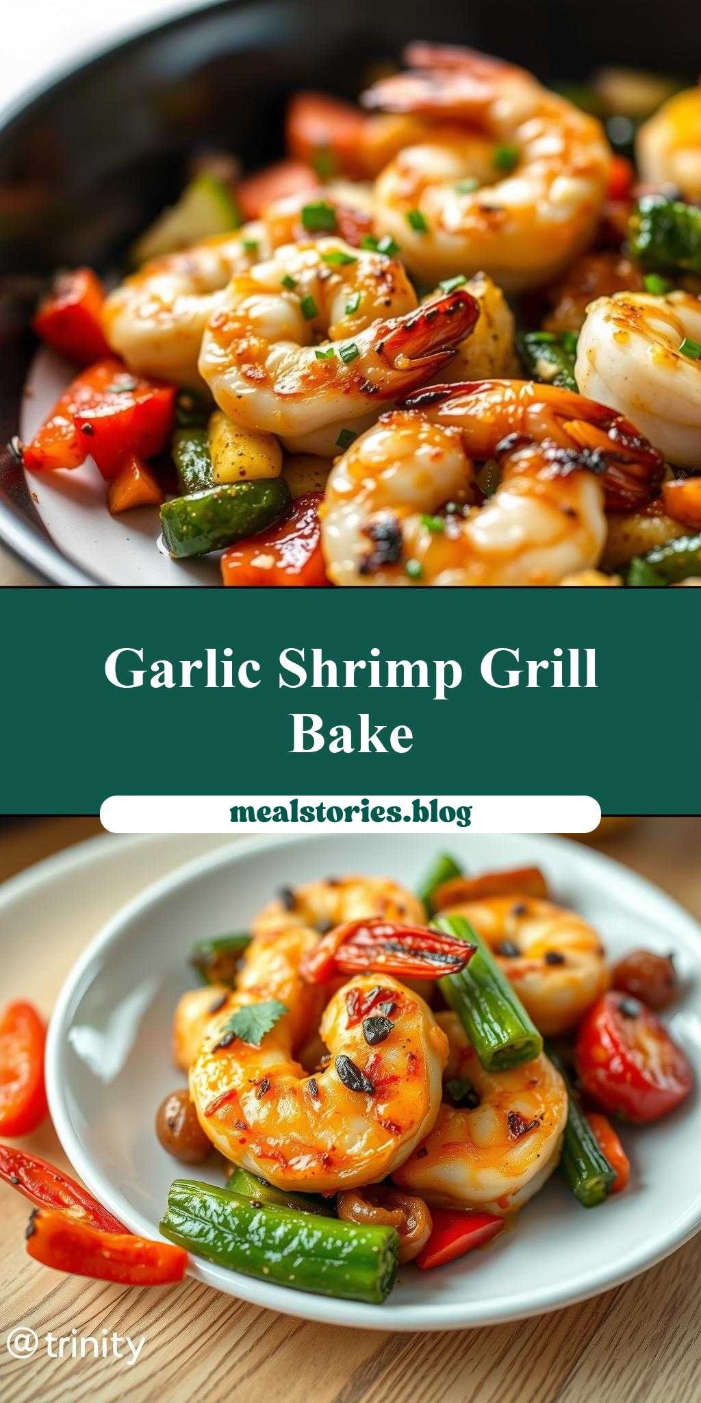 A quick and flavorful dish combining garlic parmesan shrimp with a variety of colorful veggies, all cooked in a single pan on the grill.