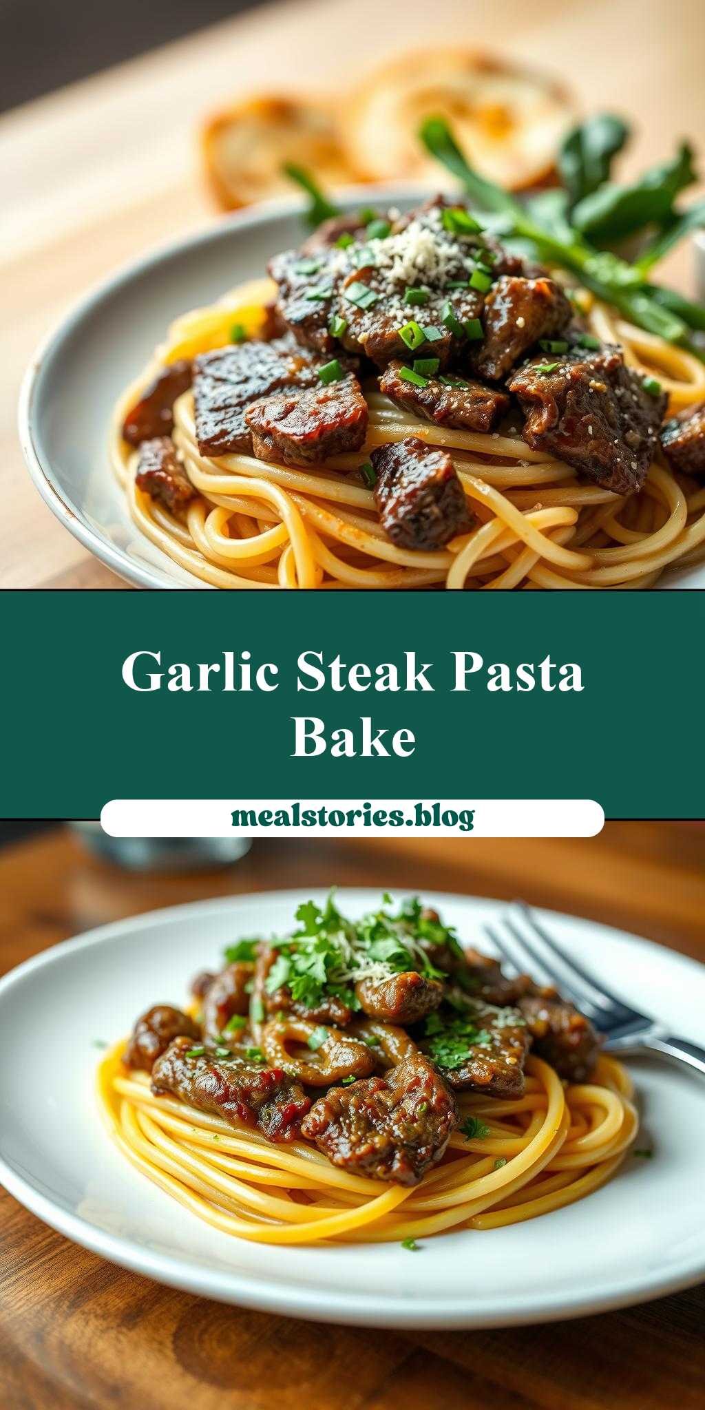 A rich and flavorful pasta dish combining tender steak, garlic sauce, and perfectly cooked pasta, suitable for special occasions and everyday meals alike.