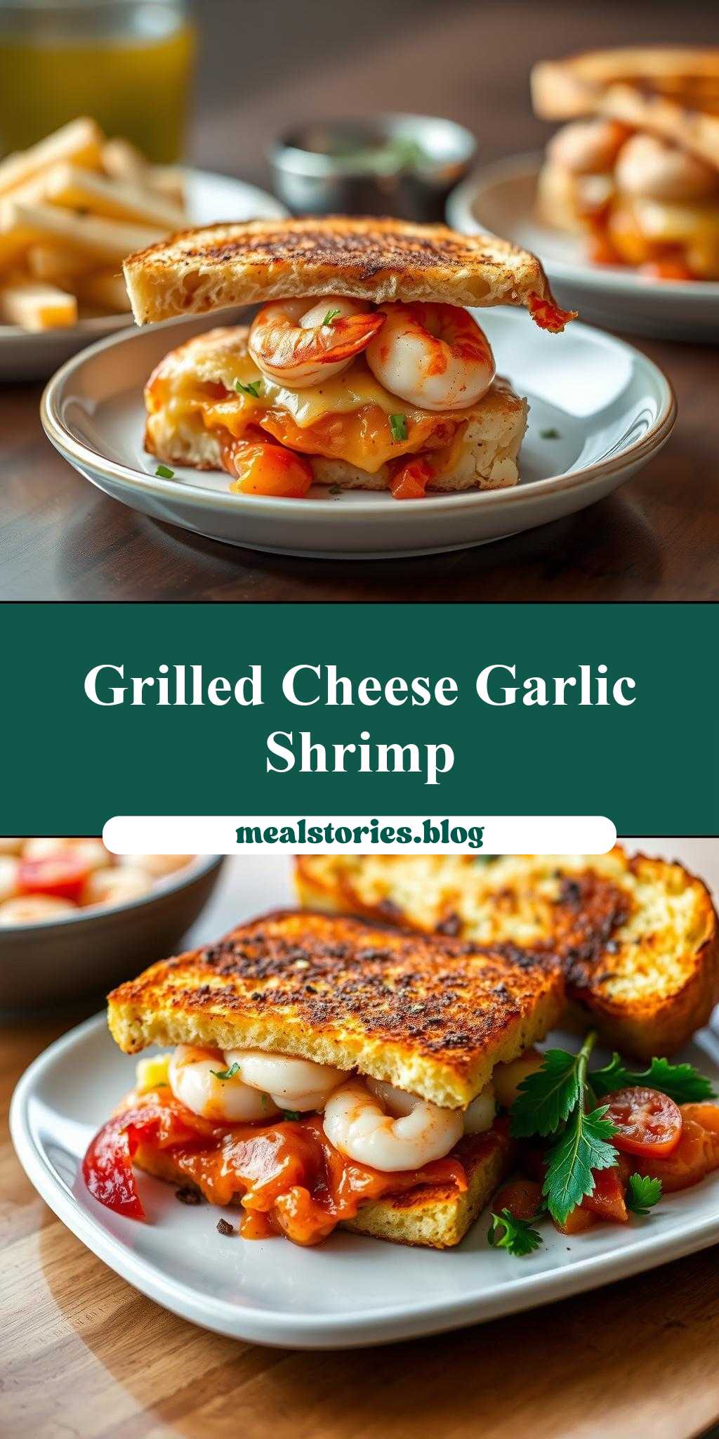 A creative twist on the classic grilled cheese, featuring succulent shrimp, garlic butter, and melted cheese on toasted bread.