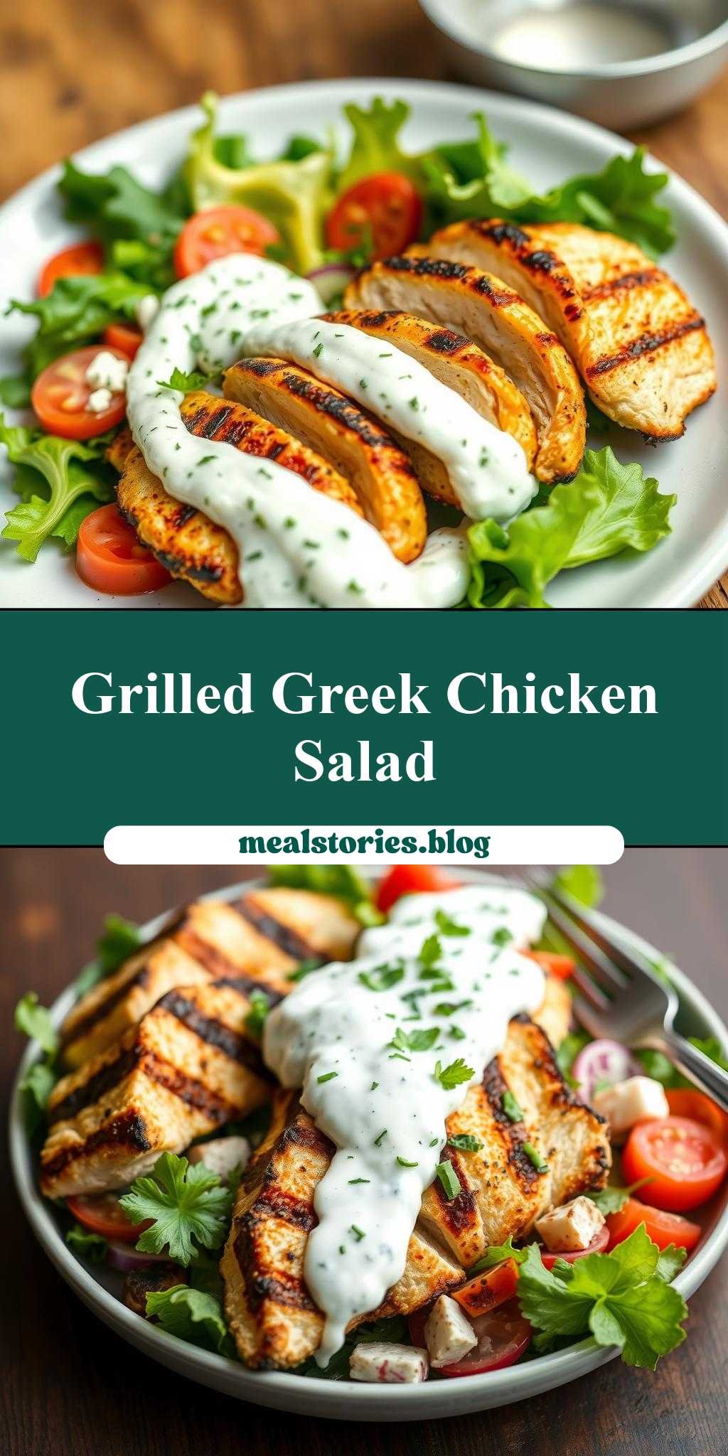 A refreshing and flavorful Greek salad with grilled chicken, tzatziki sauce, and crunchy vegetables, perfect for a quick and easy meal.