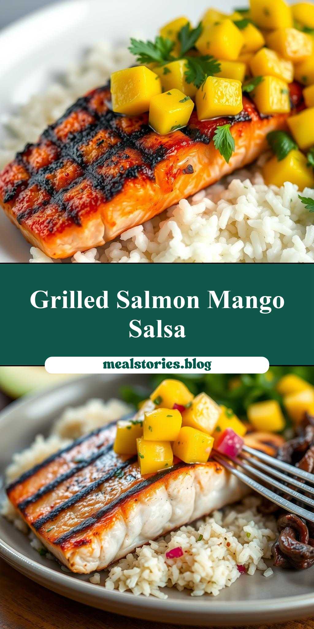 A flavorful and healthy dish combining grilled salmon, sweet mango salsa, and fluffy coconut rice, perfect for any occasion.