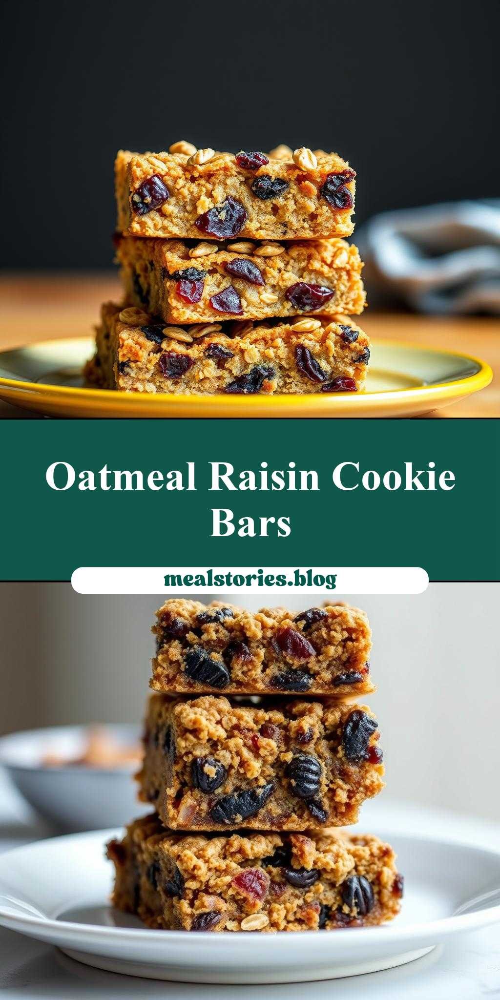 oatmeal raisin cookie bars are stacked on top of each other and the words,’oatmeal raisin cookie bars recipe’above them
