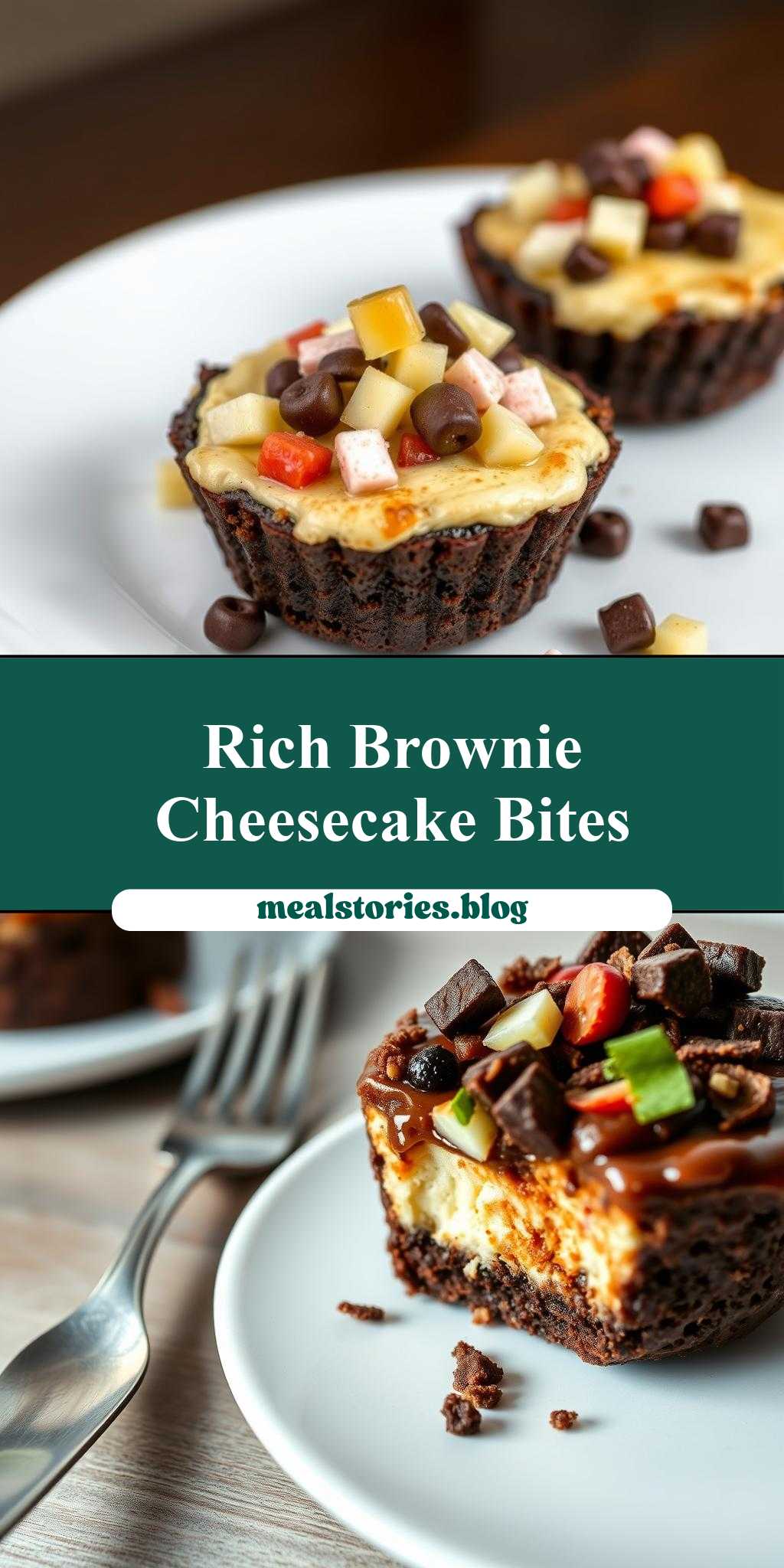 A rich dessert combining fudgy brownies and creamy cheesecake in individual cups, loaded with nuts or chocolate chips.