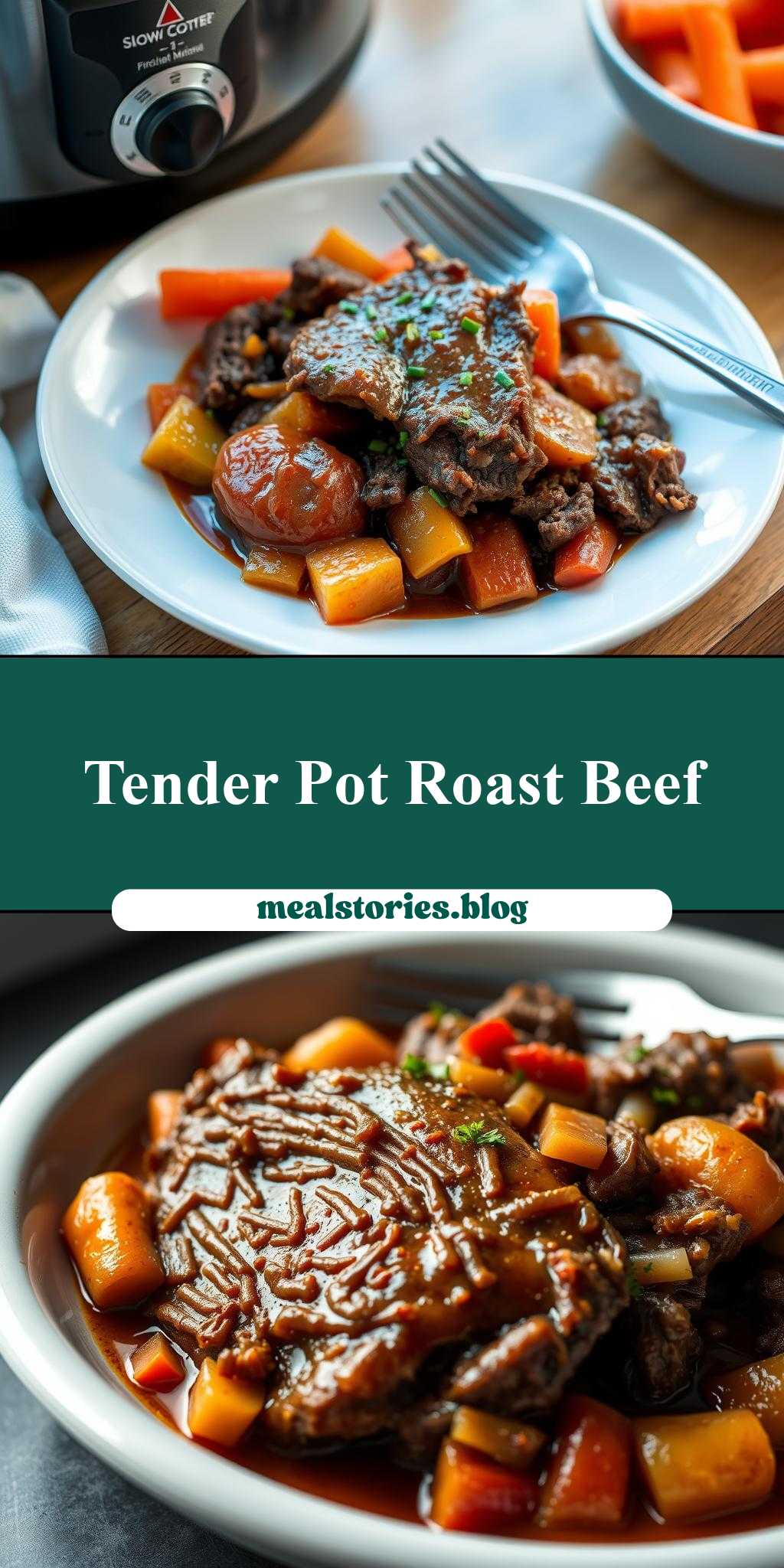 A tender and flavorful pot roast cooked to perfection in a slow cooker, served with vegetables and a rich, savory broth.