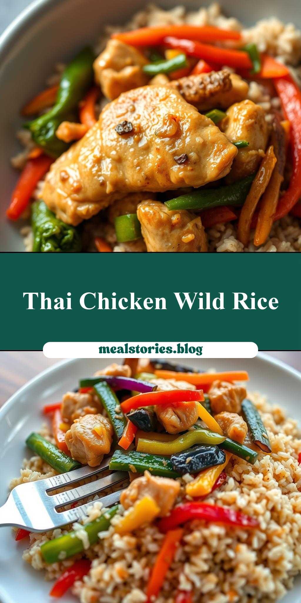 A vibrant and delicious Thai chicken stir fry made with chicken, rainbow veggies, and wild rice, perfect for a quick and nutritious meal.